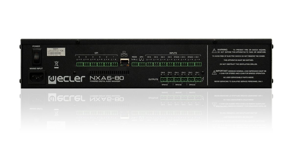 NXA6-80 to 6-kanałowy menedżer cyfrowy o mocy 80 W z własnym zasilaniem, będący w połowie drogi pomiędzy matrycą cyfrową a wzmacniaczem wielokanałowym. Cyfrowe urządzenie audio typu „wszystko w jednym", które staje się kompletnym rozwiązaniem audio, obejmującym kilka opcji zdalnego sterowania i długą listę inteligentnych funkcji.