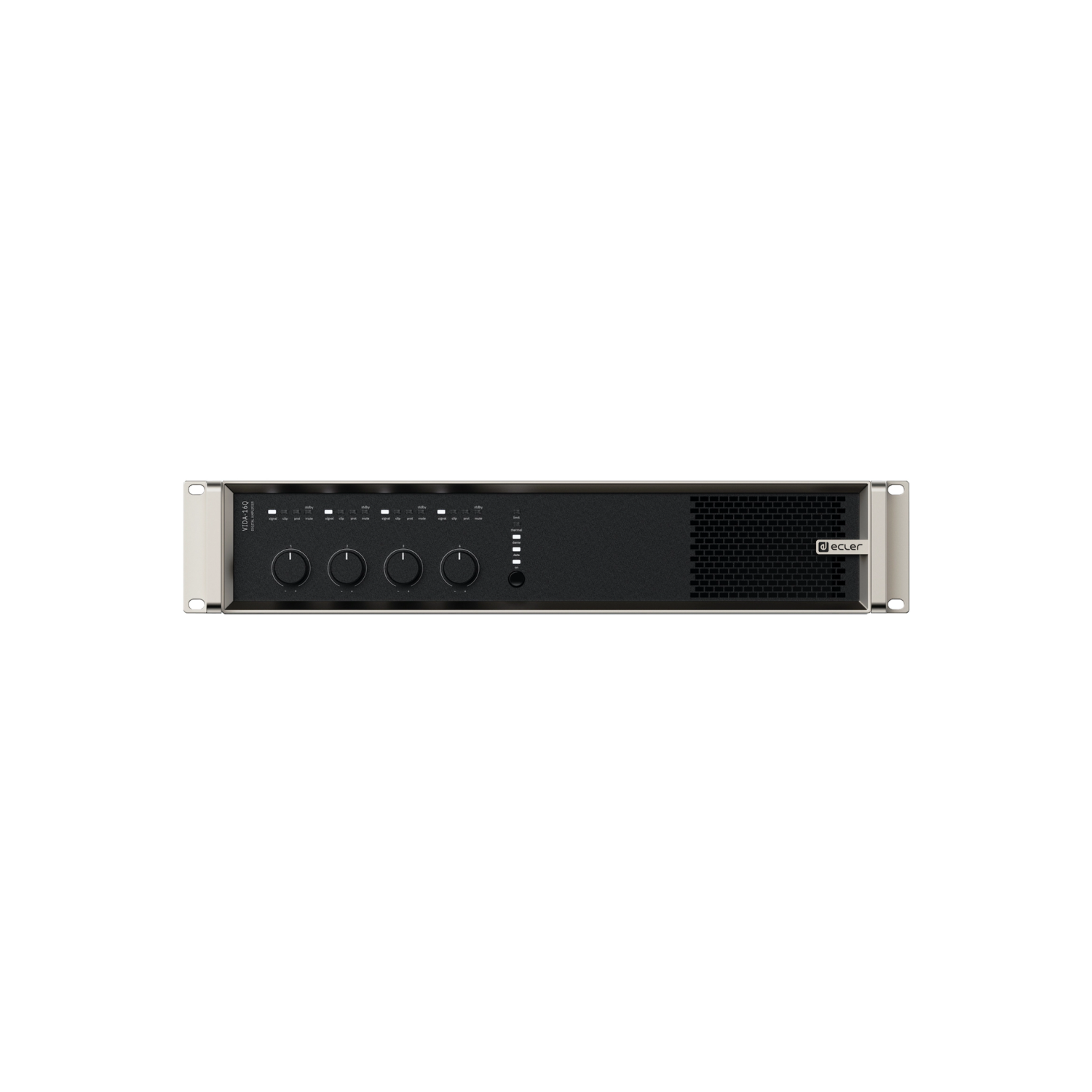 VIDA-16Q to cyfrowy wzmacniacz o mocy 1600 W z 4 wyjściami wzmacnianymi, które można niezależnie konfigurować w zakresie wysokiej (100/70 V) lub niskiej (8/4/2 ohm) impedancji. Technologia VersaPower, opracowana przez firmę Ecler, umożliwia asymetryczną dystrybucję mocy, a dzięki narzędziu Smart VersaPower ułatwia instalatorom inteligentną i szybką konfigurację. Dodatkowo, technologia wzmocnienia klasy D oraz konfigurowalne funkcje automatycznego przełączania w tryb czuwania i uśpienia dla 4 wyjść, obie konfigurowalne, dodatkowo zwiększają efektywność energetyczną. Urządzenie oferuje szeroki wachlarz możliwości dzięki 4 wejściom analogowym i 4 cyfrowym Dante/AES67, odtwarzaczowi audio z gniazdem microSD do lokalnych plików audio, a także generatorowi sygnału, a także 2 dodatkowym wyjściom liniowym i 4 cyfrowym wyjściom Dante/AES67. Wszystkimi tymi funkcjami zarządza się z poziomu intuicyjnej aplikacji webowej, która między innymi umożliwia routing sygnału (matryca), przetwarzanie sygnału audio (np. korektor graficzny czy limitery), zarządzanie priorytetami, konfigurację GPIO poprzez zdarzenia, a także kalendarz, zarządzanie playlistami i zawartością karty SD, ułatwiając w ten sposób uruchomienie instalacji audiowizualnej, jej konserwację i personalizację. Dzięki aplikacji na Androida/iOS/Web dostępnej dla użytkownika końcowego, instalacja audio może być zarządzana w łatwy, intuicyjny i dostosowany do jego potrzeb sposób.