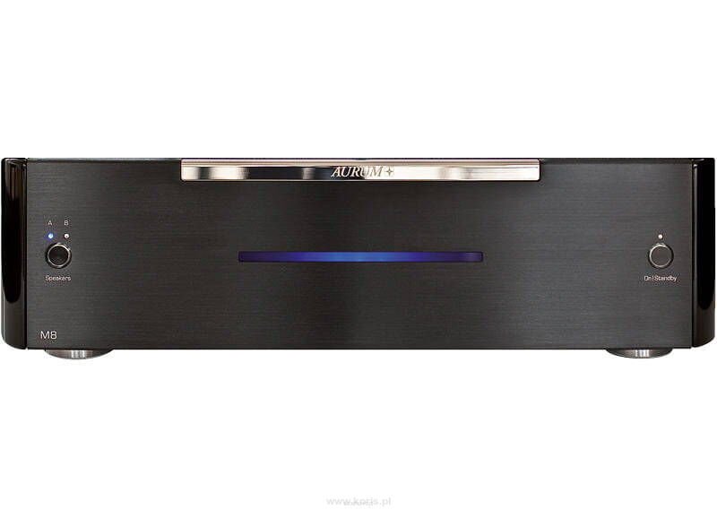 Wzmacniacz mocy AURUM M8 może pracować w trybie stereo lub mono. Duży, 850 watowy stopień zasilający zapewnia zawsze potężną rezerwę mocy. Transformator ma szczególnie niski poziom dyspersji, co jest główną zaletą specjalnej technologii niezmiernie ścisłego nawijania uzwojeń. Wzmacniacz pracuje w układzie dual-mono. Oddzielne dla obu wzmacniaczy transformatory pozwalają zminimalizować przesłuchy między kanałami, produkują przy tym wyjątkowo stabilne napięcie zasilające i zapewniają nieograniczony zapas mocy. W wyniku zastosowania takiego rozwiązania otrzymujemy brzmienie: dynamiczne i realistyczne.