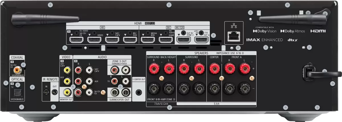 ALLM (Auto Low Latency Mode), VRR (Variable Refresh Rate), 3D ready, HDMI Pass-Through, 8K-Pass-Through, 8K-Upscaling, Deep Color, DSD256, Multi-Zone, x.v.Color