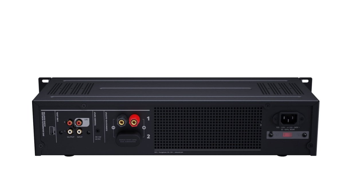 800 watów RMS, 2500 watów mocy szczytowej, platforma wzmacniacza ściennego 3000 dostosowuje flagową technologię SVS do wyzwań związanych z projektowaniem sprzętu do zabudowy. Łącząc wysokoprądowe wyjście dyskretnych tranzystorów MOSFET z wydajnością klasy D i mocą przetwarzania procesora DSP 50 MHz firmy Analog Devices, przy najgłębszych częstotliwościach bez śladu zniekształceń. By działał niezauważony wzmacniacz 2U przystosowany został do montażu w szafie rackowej.