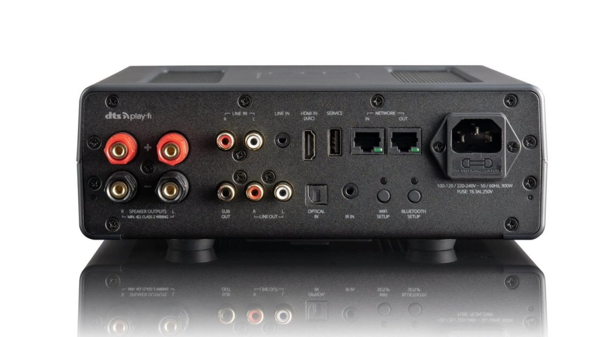 Przesyła bezprzewodowo dźwięk o wysokiej rozdzielczości, dostarczając 300 watów (2 x 150 watów) mocy, co wystarczy, aby wysterować większość dostępnych głośników, aby brzmiały jak najlepiej. Na pokładzie Wi-Fi, Apple Airplay 2 na iPhone'y i iOS, Chromecast na telefony z Androidem i inne urządzenia oraz Bluetooth. Podłącz wzmacniacz bezpośrednio do telewizora poprzez złącze HDMI lub inne wejście analogowe czy cyfrowe optyczne. Łatwe sterowanie za pomocą aplikacji na smartfony/komputery, pilotem na podczerwień, interfejsem na panelu przednim lub głosem.