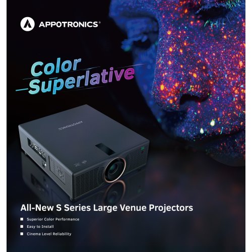 Appotronics kreatywnie zastosował technologię podstawowych kolorów RGB w systemie 1-Chip DLP®. System koła kolorów RGB 3-segmentowy zapewnia lepszą jakość obrazu przy 100% jasności kolorów.