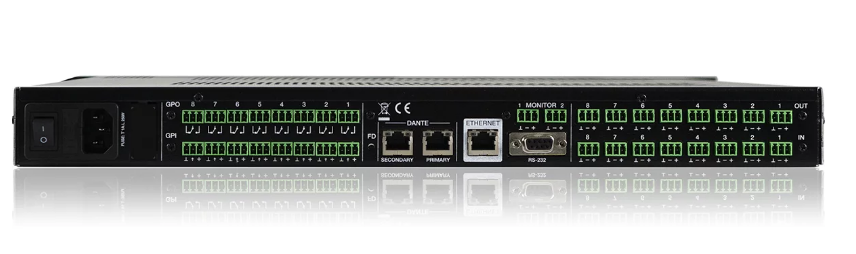 - 2 interfejsy Dante™ (pierwotny i wtórny), dostępne do konfiguracji redundantnych sieci Dante™