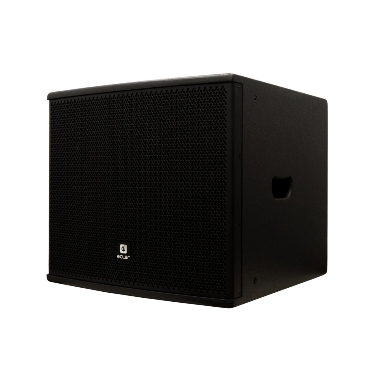 Subwoofer w drewnianej obudowie, wyposażony w 600 WRMS @ 8 Ω oraz 15" głośnik niskotonowy.