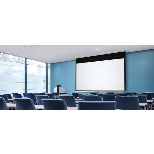 Elektrycznie rozwijany ekran projekcyjny z linii profesjonalnej PREMIUM dedykowany do zabudowy sufitowej