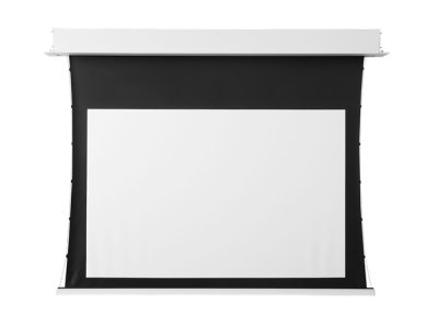 Elektrycznie rozwijany ekran projekcyjny z linii rezydencjonalnej PREMIUM dedykowany do zabudowy sufitowej, z systemem bocznych napinaczy i zintegrowanym sterowaniem IR + RF + złącze RS232/485 + Dry Contact