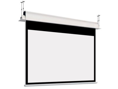 Ekran elektryczny przeznaczony do zabudowy sufitowej.Czarne ramkami 50 mm