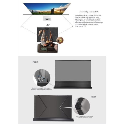 o ALR (Ambient Light Rejection) - materiał projekcyjny wzmacniający strumień światła emitowany przez projektor UST, niwelujący efekt innych źródeł światła, Gain 0.4,
