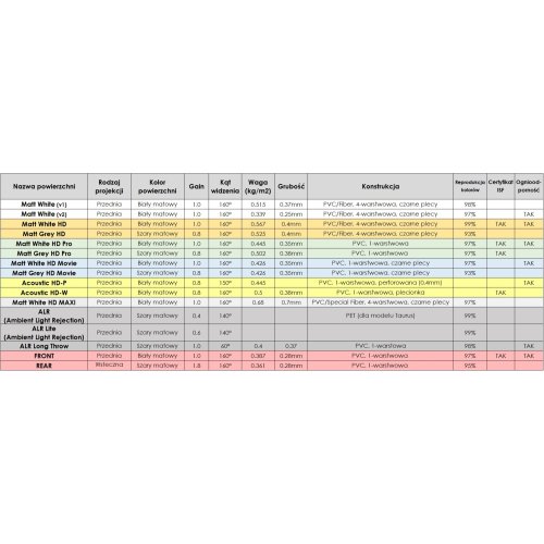 Wbudowane w kasetę ekranu gniazda (również w części egzemplarzy w rozmiarach powyżej 305cm):
