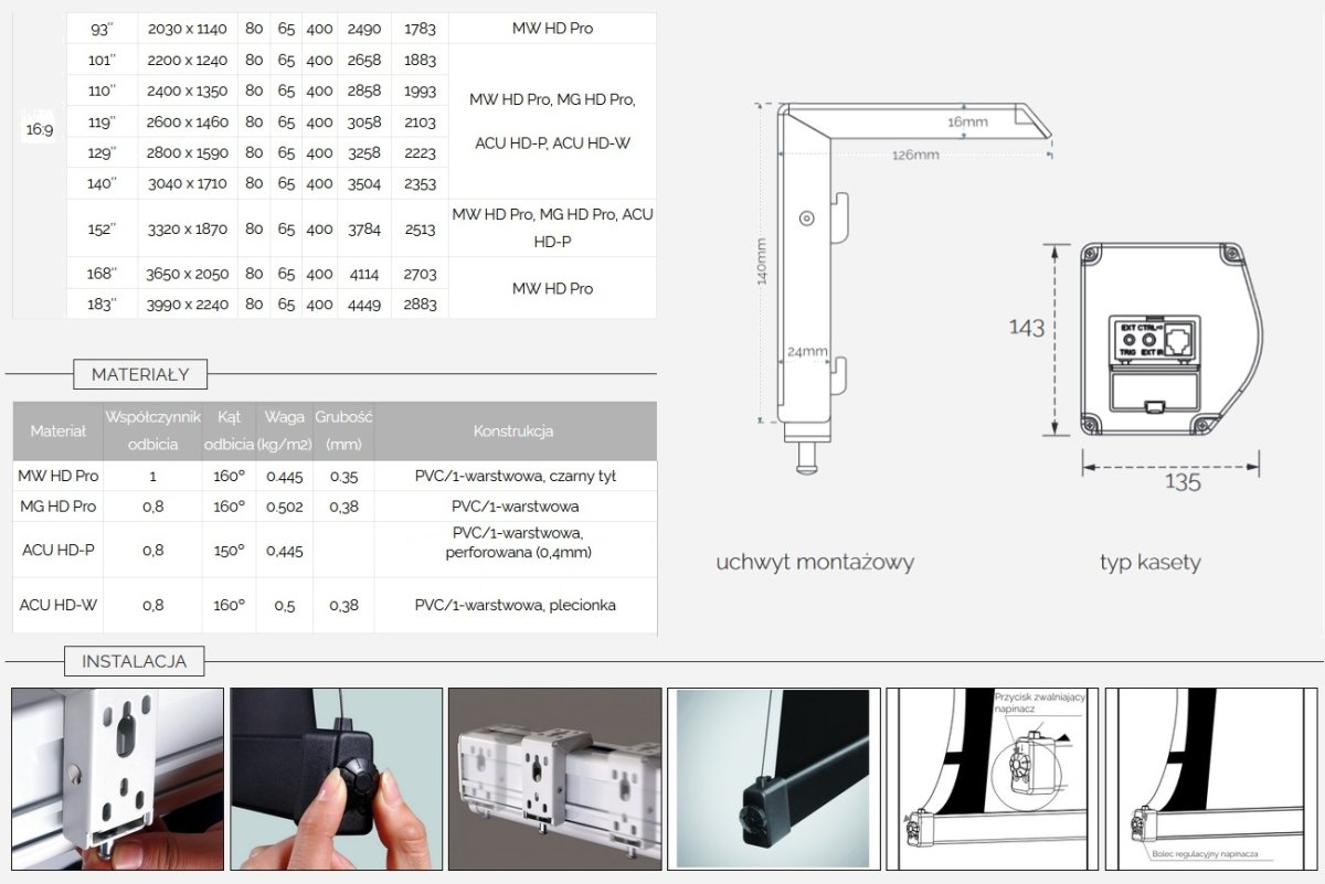 UCHWYTY, WINDY I OBUDOWY DO EKRANÓW PROJEKCYJNYCH