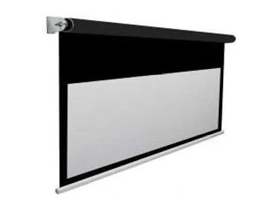 Ekran elektryczny do montażu naściennego z czarnymi ramkami.