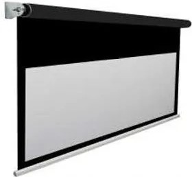 Ekran elektryczny do montażu naściennego z czarnymi ramkami.