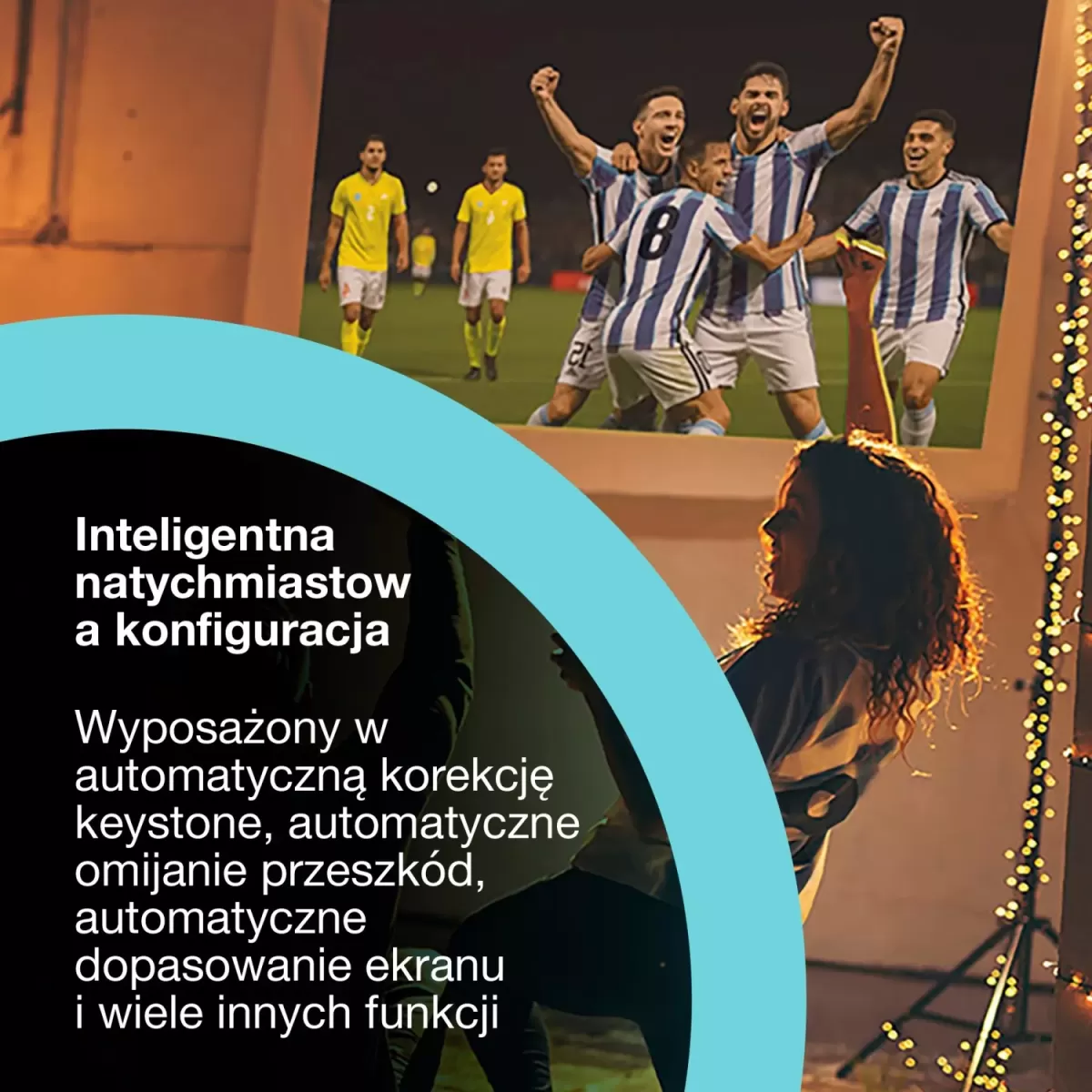 Inteligentne dopasowanie ekranu, automatyczna korekcja geometrii obrazu, unikanie przeszkód i regulacja koloru ścian w kilka sekund
