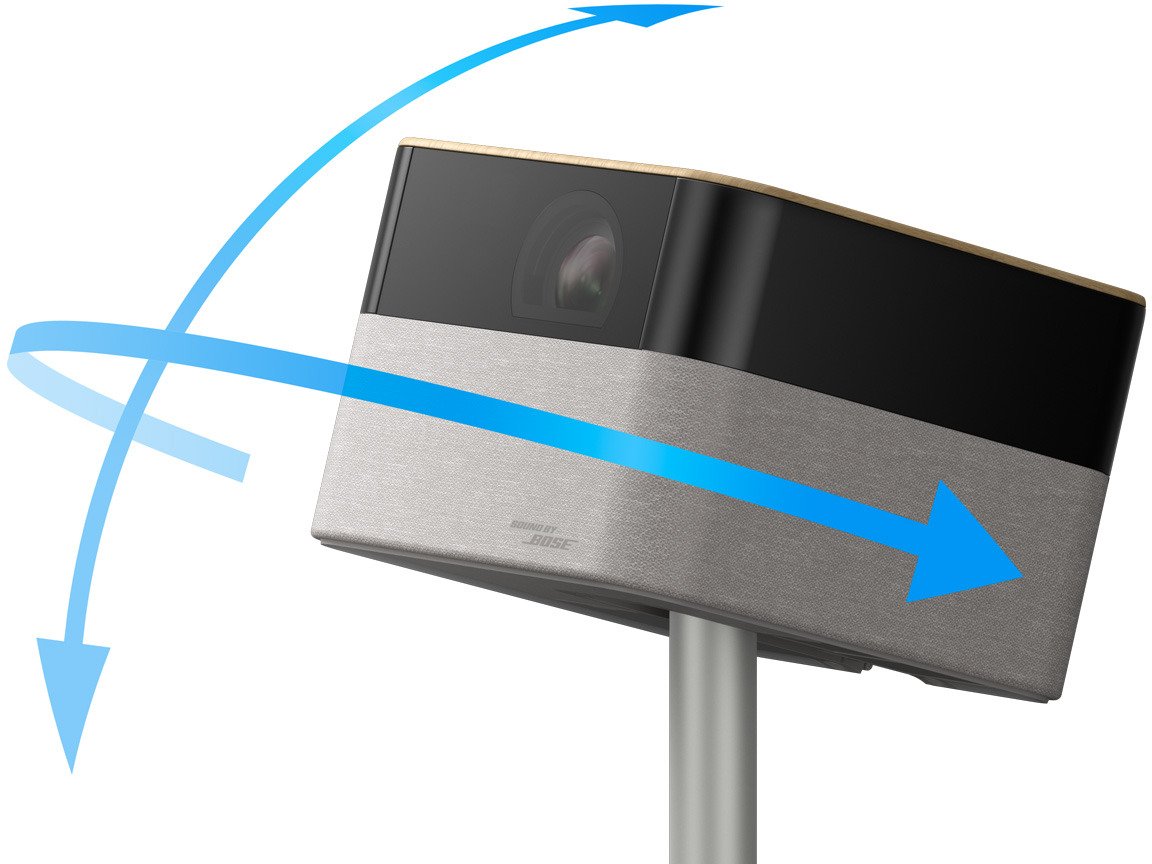 - Elastyczna projekcja dzięki inteligentnej, natychmiastowej konfiguracji Płynne działanie w pomieszczeniach i na zewnątrz oraz automatyczna konfiguracja ułatwiająca przenoszenie. Regulowana podstawa o obrocie 180° i nachyleniu 90° umożliwia projekcję na dowolnej powierzchni – w domu lub w podróży.