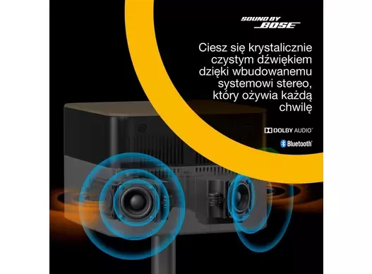 - Sound by Bose, Bluetooth i Dolby Audio Zaawansowana, najnowocześniejsza technologia dźwięku Sound by Bose to najwyższa jakość dźwięku dzięki zintegrowanym technologiom Bluetooth i Dolby Audio, które zapewniają prawdziwie wciągające wrażenia.