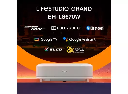 - Poprawa jakości obrazu dzięki AI Technologia 3LCD o jasności 3600 lumenów i optymalizacja obrazu oparta na sztucznej inteligencji zapewniają żywe, nawet 3-krotnie jaśniejsze obrazy*