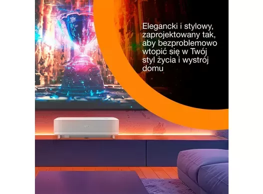 Przekształć codzienne oglądanie we wciągające, kinowe wrażenia dzięki temu stylowemu projektorowi Smart z zaawansowaną technologią audio i obrazu, ekranem o przekątnej do 120 cali i łatwą konfiguracją.