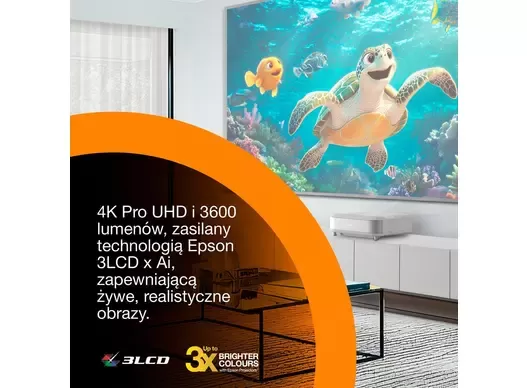 Technologia 3LCD o jasności 3600 lumenów i optymalizacja obrazu oparta na sztucznej inteligencji zapewniają żywe, nawet 3-krotnie jaśniejsze obrazy
