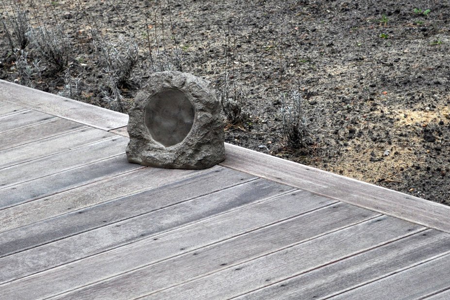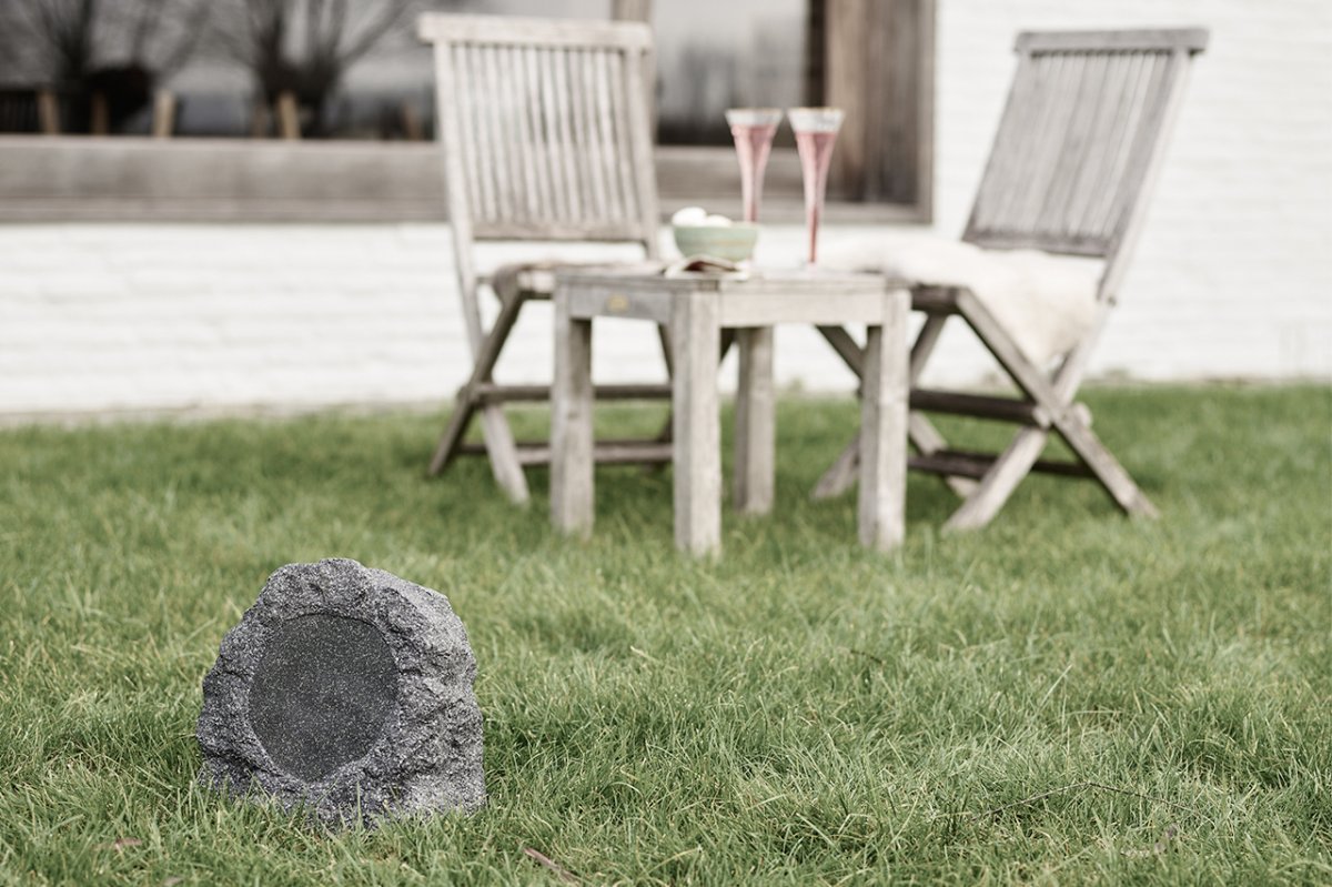 - Niezwykle dyskretny głośnik zewnętrzny w kształcie skały doskonale wtopi się w roślinność wokół tarasu lub ogrodu. Technologia 100V umożliwia ustawienie wielu głośników jednym ruchem.