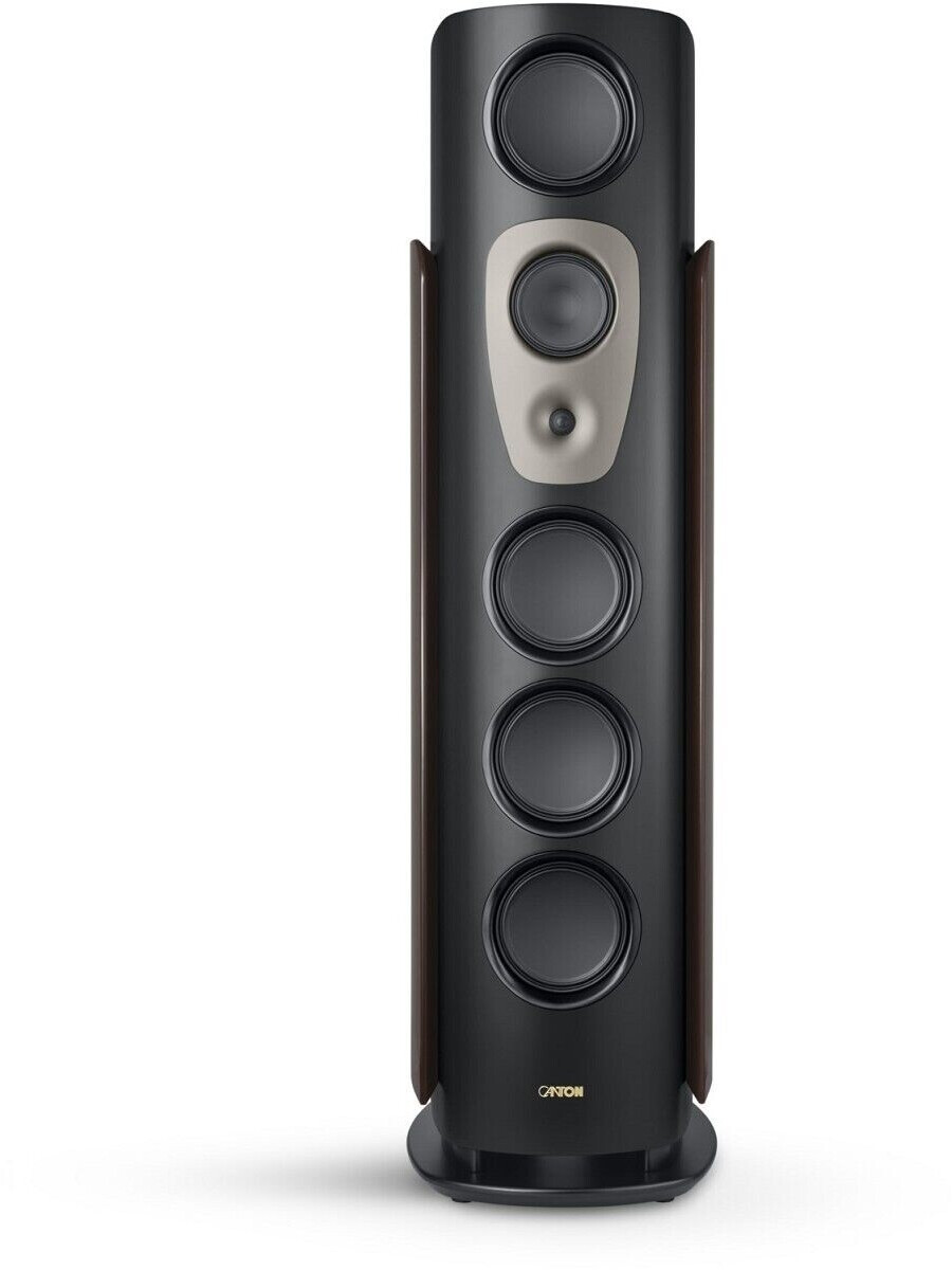 Dla serii Reference GS zaprojektowano okrągłe przegrody, które są również stosowane w nowej serii Reference. Te przegrody o grubości 81 milimetrów są produkowane na specjalnej 5-osiowej frezarce CNC. Misternie wygięte panele boczne, podstawy i pokrywy są wykonane z wielowarstwowego laminatu drewnianego o grubości 30 milimetrów, co zapewnia wyjątkową stabilność obudowy. Ponadto panele boczne z cienką okleiną z prawdziwego drewna, które są mocno przymocowane do paneli bocznych, znacznie zwiększają wagę obudowy. To dodatkowo usztywnia obudowę i znacznie zmniejsza naturalne rezonanse obudowy głośnika. Płynne krzywizny umożliwiają akustycznie zoptymalizowaną konstrukcję obudowy, której brak krawędzi skutecznie zapobiega odbiciom krawędziowym. Za odtwarzanie muzyki w 155-kilogramowym głośniku 3-drożnym odpowiada sześć przetworników: cztery 218-milimetrowe głośniki niskotonowe BCT, strategicznie rozmieszczone na przegrodzie, zapewniają imponującą wydajność w dużej obudowie w połączeniu z wydajnym systemem prowadzenia basu. Umieszczony wysoko głośnik średniotonowy BCT o średnicy 174 mm zapewnia żywe i autentyczne odtwarzanie dźwięku. Po raz pierwszy w historii firmy Canton w głośniku wysokotonowym o średnicy 25 mm zastosowano kopułkę diamentową. Materiał ten umożliwia odtwarzanie dźwięków wysokich tonów z najwyższą szczegółowością. Głośnik wysokotonowy zachowuje swoją dokładność i naturalne brzmienie nawet przy najwyższych poziomach głośności – całkowicie bez wysiłku i bez stresu.