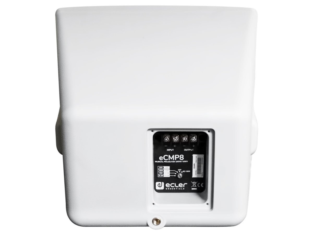 eCMP8 to projektor dźwięku o mocy 150 W i mocy 150 W, gotowy do zastosowań zewnętrznych dzięki wodoodpornemu i chroniącemu przed słońcem materiałowi budowlanemu (IP56). Wyposażony jest w 8-calowy przetwornik LF i 1,4-calowy przetwornik koncentryczny HF, moc znamionową 150 W przy 8 Ω i transformator liniowy 70/100 V z opcjami mocy 37,5/75/150 W/8 Ω.