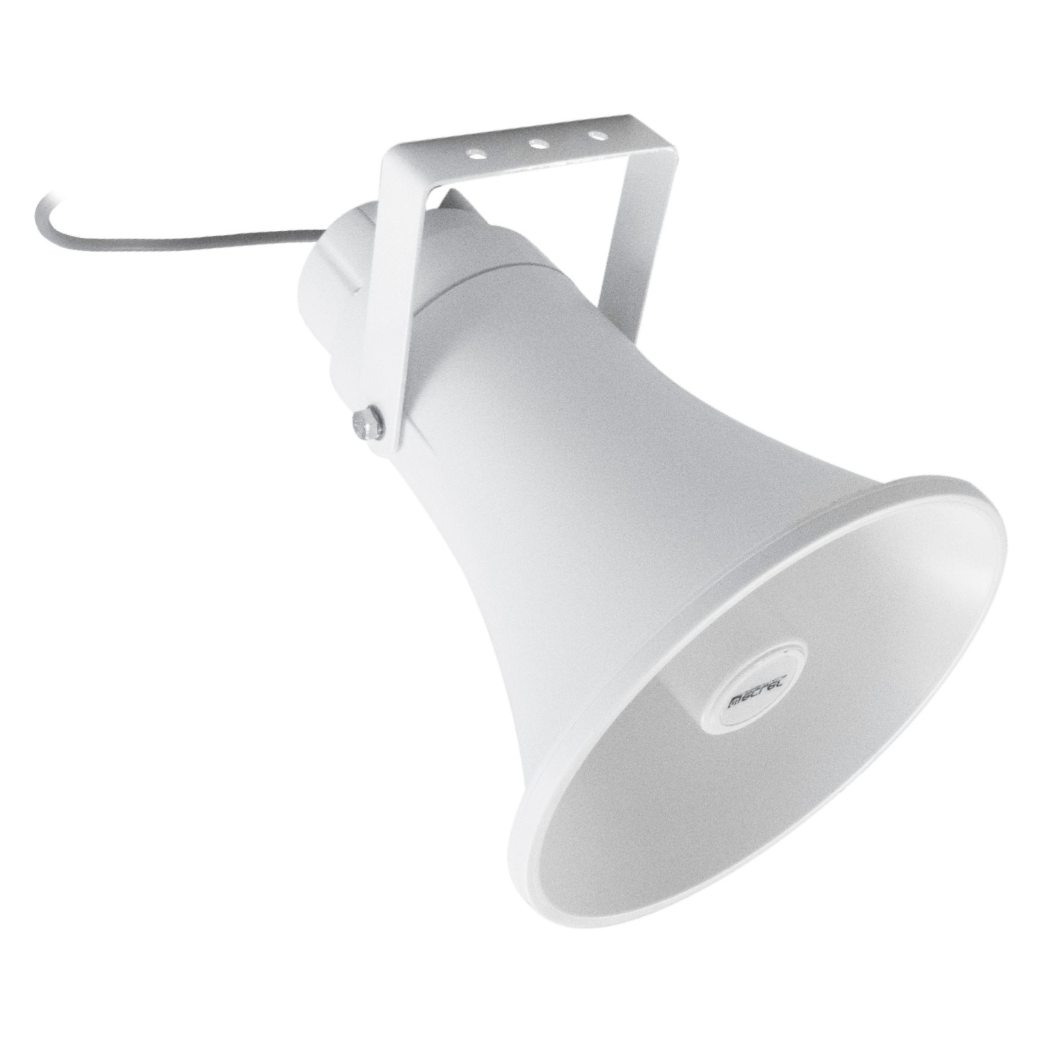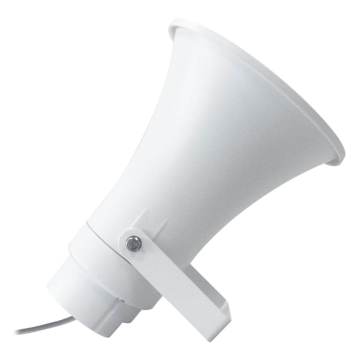 Głośnik tubowy, odporny na warunki atmosferyczne. Norma IP 66. Wbudowany transformator na linie 100 V z regulacją mocy: 30/20/10/5W/8ohm @ 100V. Kolor biały. Waga 2,6kg