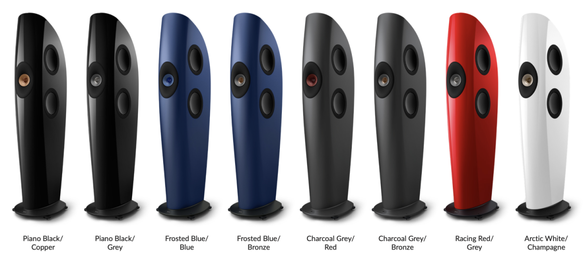 Piano Black/Copper, Piano Black/Grey, Frosted Blue/Blue, Frosted Blue/Bronze, Charcoal Grey/Red, Charcoal Grey/Bronze, Racing Red/Grey, Arctic White/Champagne