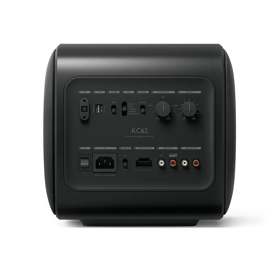 Opcje połączeń KC62 pozwalają na użycie go z prawie każdym systemem audio, KEF KC62 został wyposażony złącza - KEF SmartConnect i wejścia głośnikowe eliminujące problemy z połączeniem. Wyjście liniowe z HPF pozwala na wyjątkowo precyzyjną integrację oraz KC62 jest również kompatybilny z KW1 dla prostej kompatybilności bezprzewodowej.