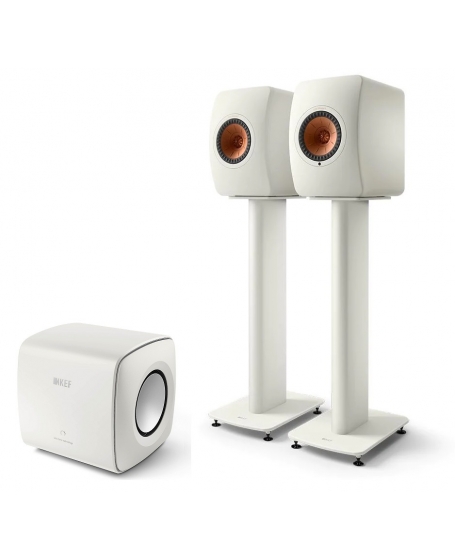 KEF LS50 Wireless II Mineral White + KEF KC62 + Stojaki S2
