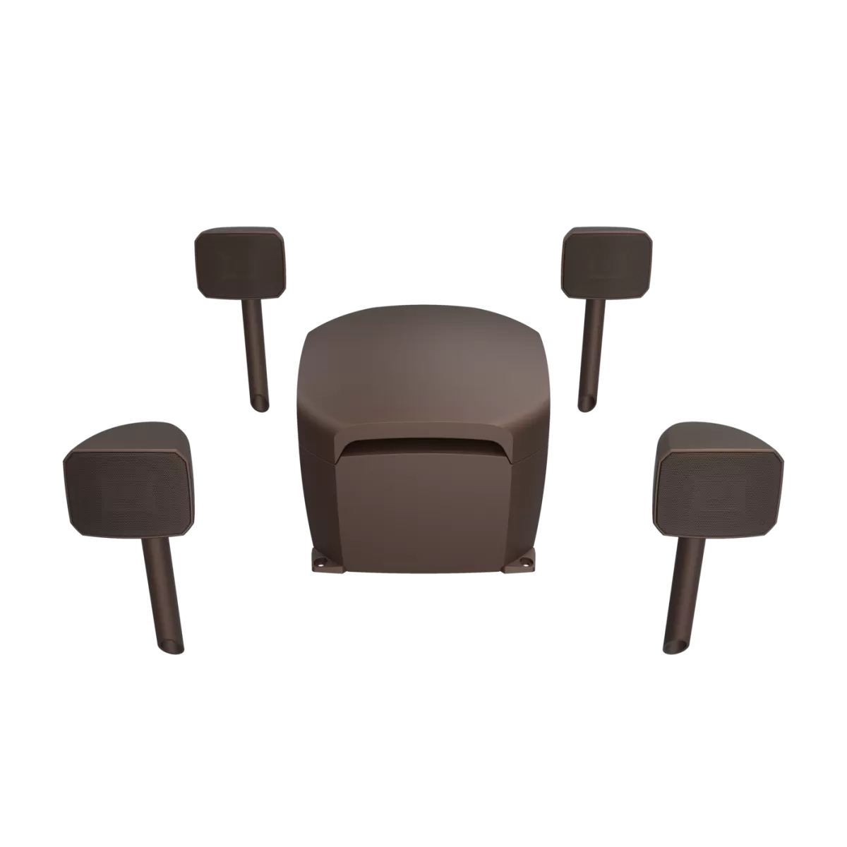 four aimable satellite speakers with 1" Tractrix® horn-loaded aluminum tweeter and 4" polypropylene woofer each