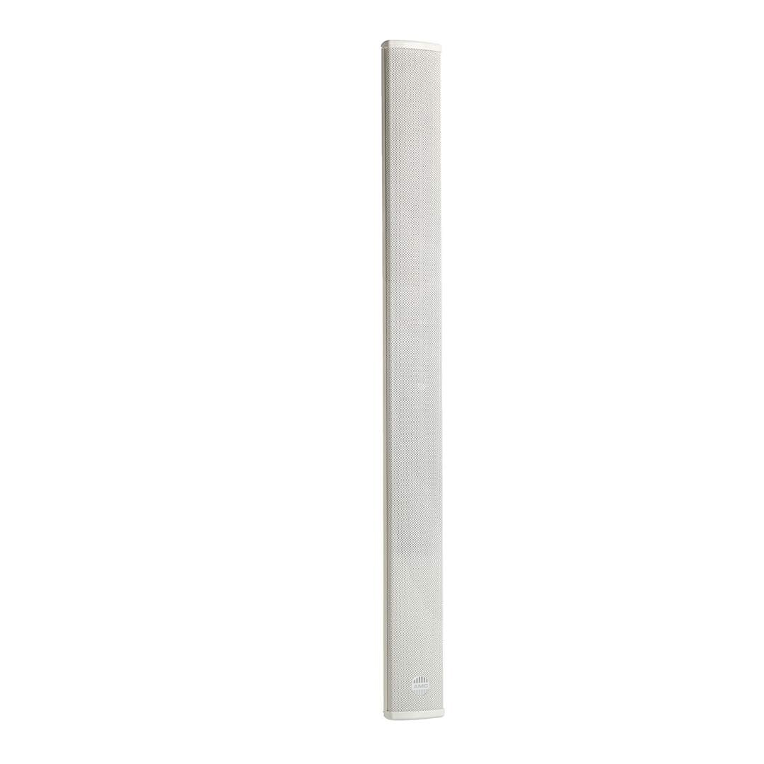 Aluminiowy głośnik kolumnowy o niezwykle smukłej sylwetce, wyposażony w dziesięć 2" przetworników niskotonowy oraz jeden 1" przetwornik wysokotonowy. Moc znamionowa 50W/20Ω. Wbudowany transformator o odczepach 100V/50W-25W-12,5W-20Ω, pasmo przenoszenia 180-18000Hz, czułość 91dB (1W/1m). Współczynnik ochrony IP55. Kolor Biały (RAL9016).