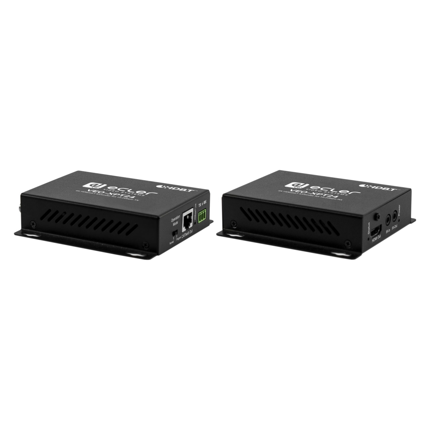 VEO-XPT24 pozwala na przesłanie sygnału wideo w formacie 4K na odległość do 40m lub sygnału FullHD na odległość do 70m za pośrednictwem kabla sieciowego Cat 5e/6 cable. Obsługuje format 4K z maksymalnym przesyłem danych 10.2Gbps włącznie z formatami 3D. Produkt jest zgodny z HDCP 2.2 i obsługuje sterowanie CEC i Power Over HDBaseT: odbiornik może być zasilany przez nadajnik za pośrednictwem kabla Cat.5e / 6.