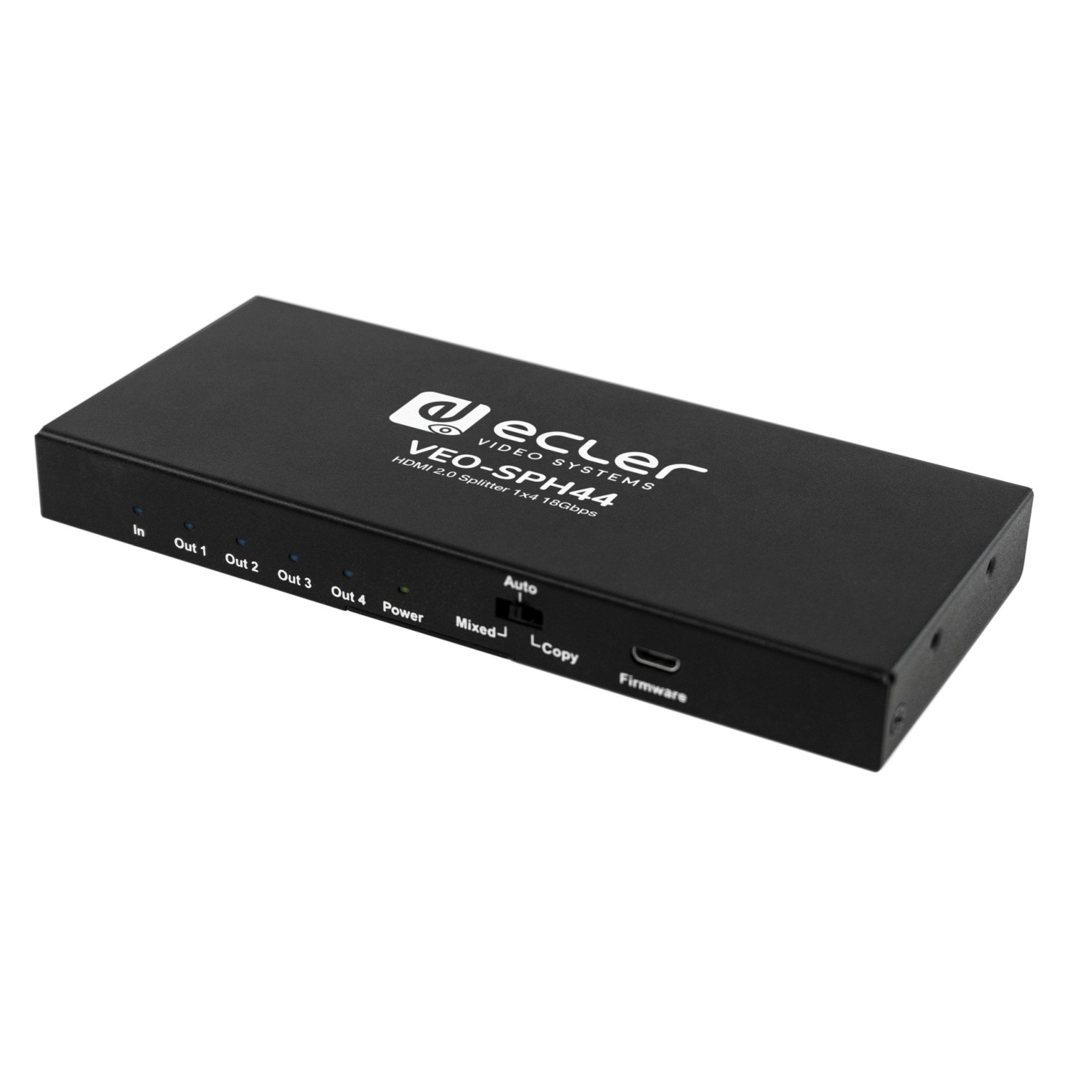 VEO-SPH44 to spliter HDMI 1x4 dla formatów o wysokim zakresie dynamicznym (HDR). Jest zgodny z HDCP 2.2 / 1.4 i obsługuje wideo 4K / UHD przy 60 Hz z próbkowaniem chromatycznym 4: 4: 4, a także sygnały HDMI o przepustowości do 18 Gb / s. Jest to idealne rozwiązanie dla aplikacji wymagających źródeł i odbiorników 4K / UHD i HDR. Posiada funkcje zarządzania EDID, wskaźniki LED na przednim panelu informujące o stanie zasilania i sygnału.
