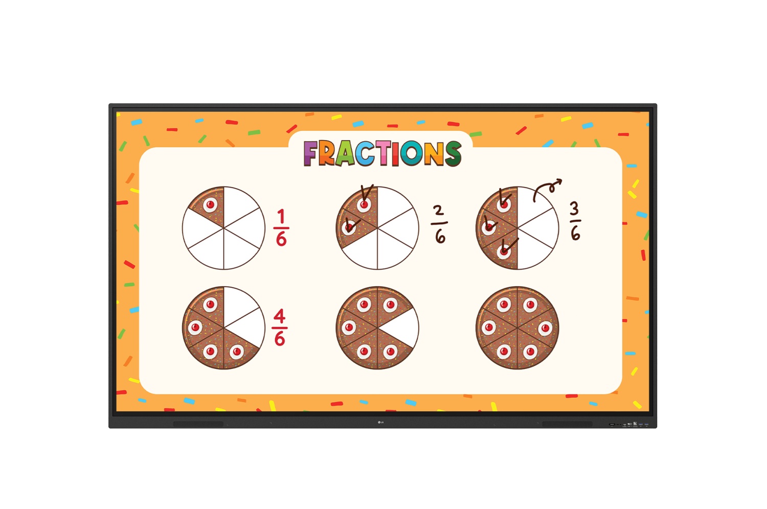 LG CreateBoard oferuje różnorodne szablony i narzędzia edukacyjne, takie jak linijka, tabela i karteczki samoprzylepne, które zachęcają uczniów do aktywnego uczestnictwa w lekcji i ułatwiają prowadzenie intuicyjnych lekcji.