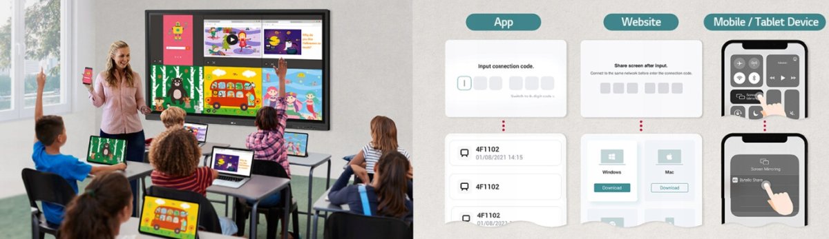 LG CreateBoard obsługuje bezprzewodowe połączenia Bluetooth z różnymi urządzeniami, takimi jak głośnik, mysz, klawiatura itp. Jest to optymalne rozwiązanie do tworzenia środowiska hybrydowego, dzięki czemu zajęcia online i offline mogą przebiegać płynnie.