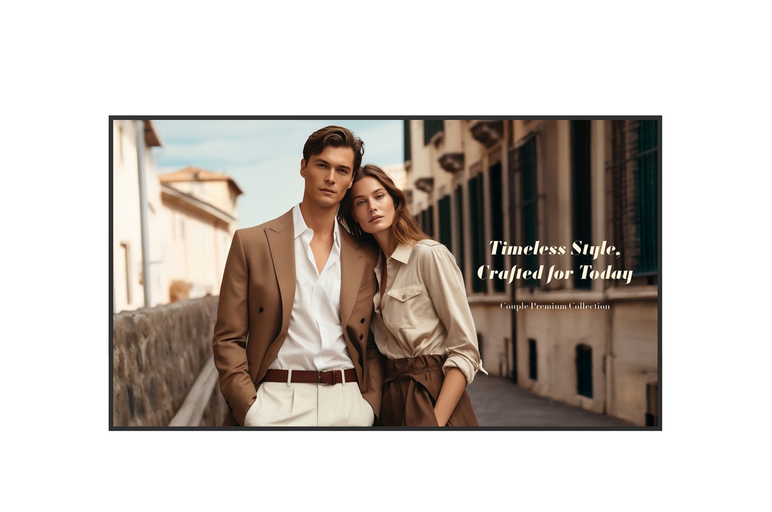 Seria UH5Q charakteryzuje się idealnie wyważonymi, poziomymi i pionowymi, smukłymi ramkami, tworząc wizualnie harmonijne rozwiązanie. Jej specjalistyczna konstrukcja ułatwia instalację w sklepach detalicznych, zapewniając jednocześnie prawdziwie wciągające wrażenia wizualne.