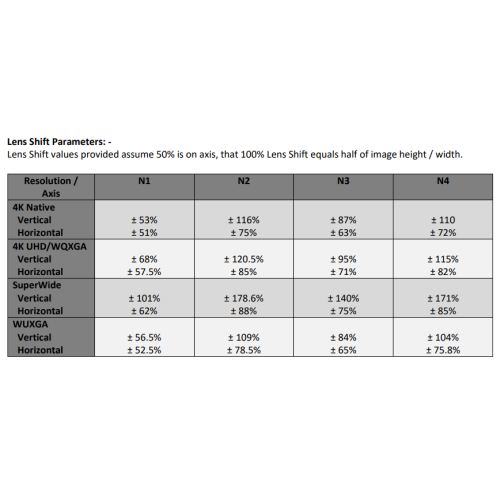 0,80 – 1,25:1 @ 4K UHD/WQXGA/SuperWide