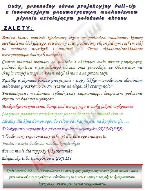 m. Opatentowany Nożycowy System Na Pneumatycznych Siłownikach Ułatwiający Bezwysiłkową Instalację Ekranu Na Wybranej Wysokości