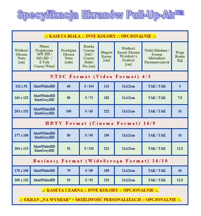 k. Opcjonalne Malowanie Proszkowe Kasety Ekranu Oraz Listwy Usztywniającej Płótno Na Dowolny Kolor Z Palety RAL