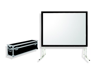W zestawie: aluminiowa rama ekranu, nogi, powierzchnia projekcyjna, skrzynia transportowa,