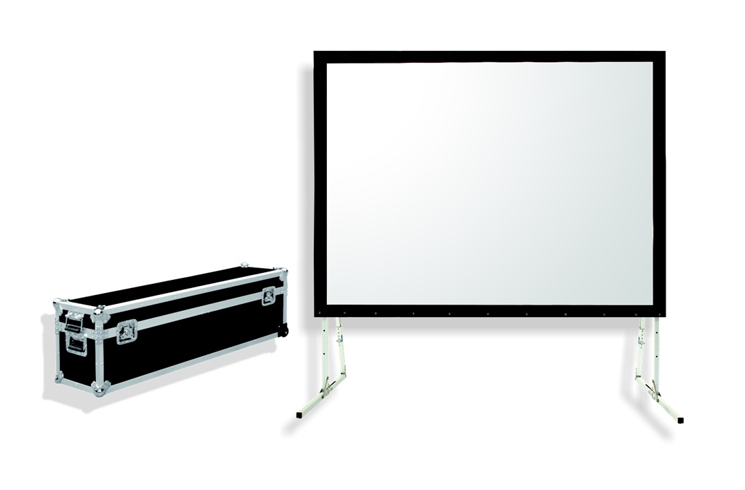 W zestawie: aluminiowa rama ekranu, nogi, powierzchnia projekcyjna, skrzynia transportowa,
