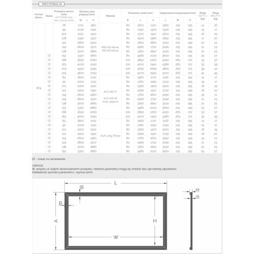 ⁽*⁾ Inne formaty obrazu NA ZAMÓWIENIE.