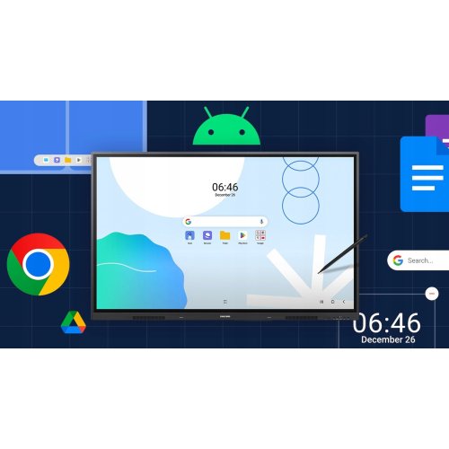 Przedstawiamy interaktywny wyświetlacz z serii WAD, zapewniający angażujące doświadczenia edukacyjne. Monitor oparty na systemie operacyjnym Android, oferuje przyjazną i intuicyjną obsługę. Daje możliwość pobierania aplikacji za pośrednictwem Google Play oraz korzystania z preinstalowanych narzędzi, takich jak YouTube i Chrome, wspierając produktywność i otwierając nową erę cyfrowego nauczania.