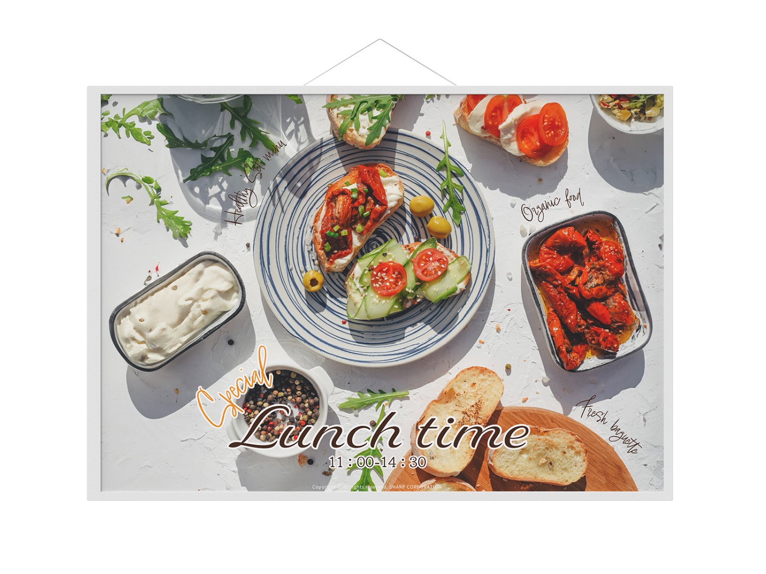 Stanowiąc cyfrową alternatywę dla papierowych plakatów, oferujący pełną gamę kolorów e-papier umożliwia wyświetlanie treści statycznych, które są stale prezentowane, ale mogą wymagać okresowych aktualizacji, jak np. promocje w punkcie sprzedaży, menu i informacje o alergenach w punktach sprzedaży detalicznej i przyjmowania gości, rozkłady jazdy, a także godziny odlotów lub odjazdów i numery bramek, peronów lub stanowisk na dworcach i lotniskach. E-papier jest czytelny w mocnym świetle i ma wygląd zwykłego papieru – nie męczy oczu, nie tworzy odblasków i nie emituje światła niebieskiego, co zapewnia trwałość i komfort użytkowania.