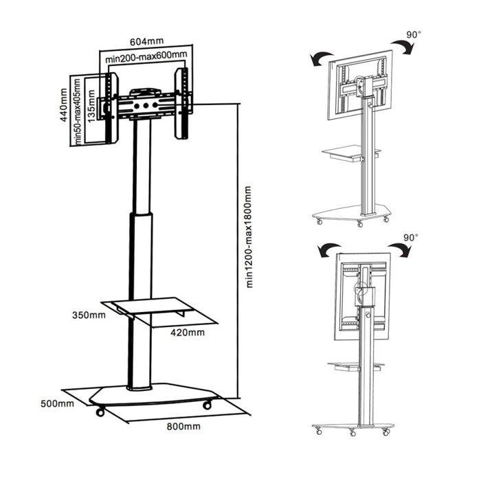 regulacja wysokości telewizora na teleskopowej kolumnie od 120 cm - 180 cm