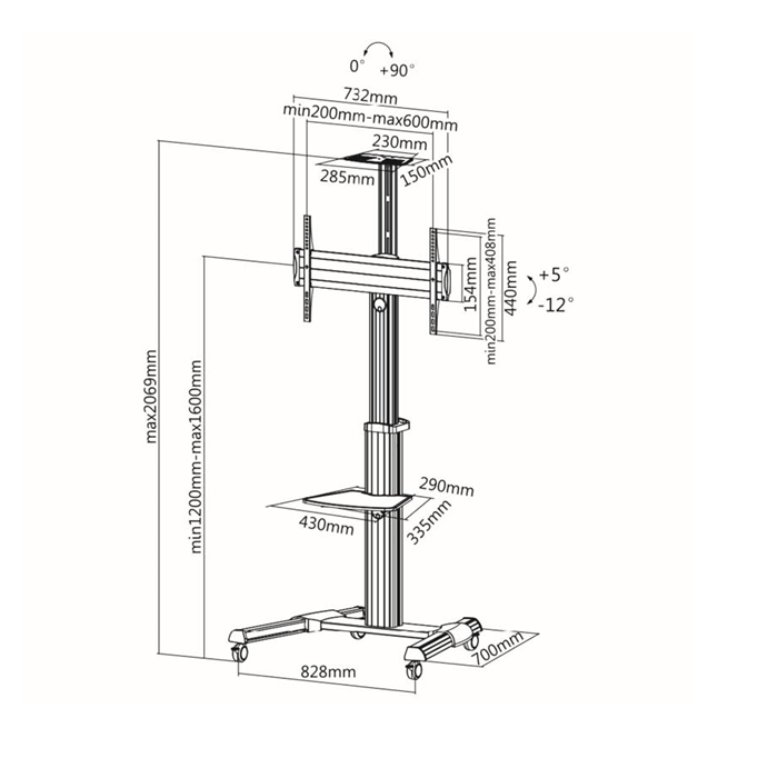 uniwersalny wózek / stojak mobilny do telewizorów LCD LED Plazma 37″-75″
