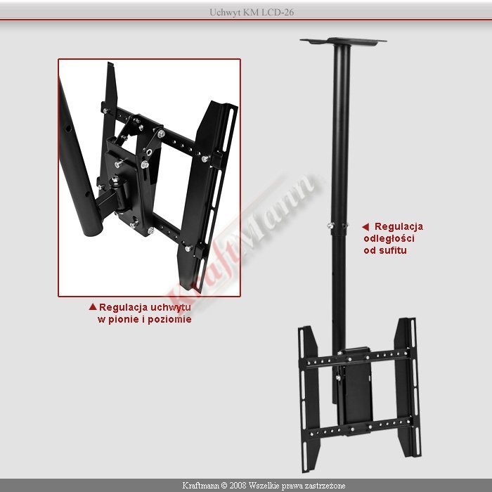 Uchwyt Uchylno-Obrotowy Sufitowy max 50" max 25 KG KM-LCD-26