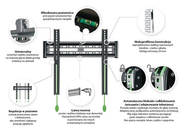 - uniwersalny regulowany ultrapłaski uchwyt VM-P10-LUX do telewizorów LCD LED Plazma o wadze do 70 kg