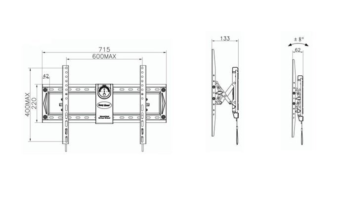 - uniwersalny uchwyt Wall-Mount-XL-Push do monitorów oraz telewizorów LCD LED Plazma o wadze do 60 kg